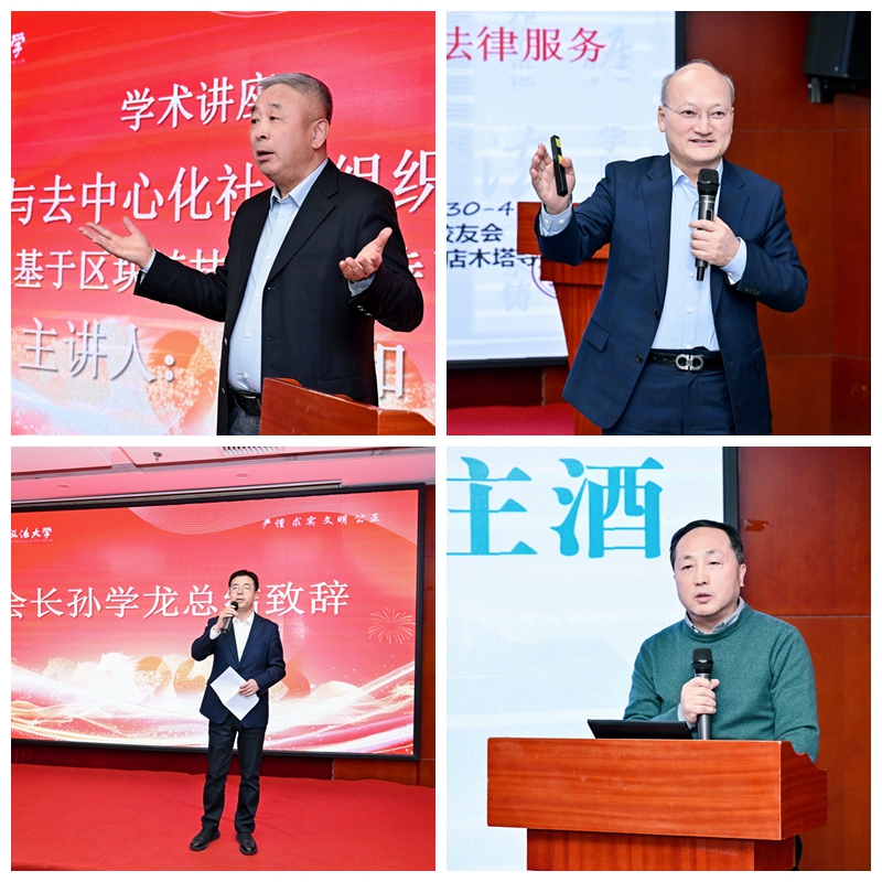 在主题分享与学术交流环节,1988级校友余宗霖以自身创业发展实践为切入点,分享了企业的创新发展、文化理念等内容。安保和、强力聚焦当前科技文化与经济法律发展所面临的新形势和新挑战,分别以《中心化与去中心化社会组织的演进—从基于区块链技术的比特币谈起》《非法金融与金融黑灰产的甄别及其法律服务》为题,从不同维度切入前沿理论与实践的发展,深入浅出、抽丝剥茧地解读问题,并提出一系列兼具前瞻性与操作性的创新应对策略,为与会校友带来了精彩的学术思辨与知识分享。